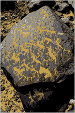 岩画区面积达18平方公里,数量有近万幅之多,岩画的内容以刻画动物为主,主要有牛、羊、马、鸡、兔、鹿、蛇、鹰、龟等动物,其形象或静或动、或站或卧、或单或多,其物种之多样、形态之各异,令人叹为观止。岩画中也有表现人类活动的画面,画中的人们有的在放牧,有的在狩猎、有的在对搏,有的在歌舞,其形象活灵活现,栩栩如生。在岩画中,还有一部分刻画的是日、月、星辰等天体图象,另外还有部分是各族各代、各式各样的文字图案,表现出各式各样的意思。