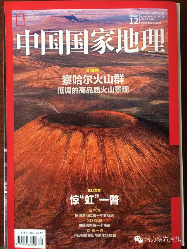 察右后旗乌兰哈达火山群荣登《中国国家地理》杂志,封面以“察哈尔火山群低调的高品质火山景观”为题,用一张火山全貌景观图展示出了察哈尔火山的魅力。《中国国家地理》杂志用20页详细的介绍了察哈尔火山群具体情况。