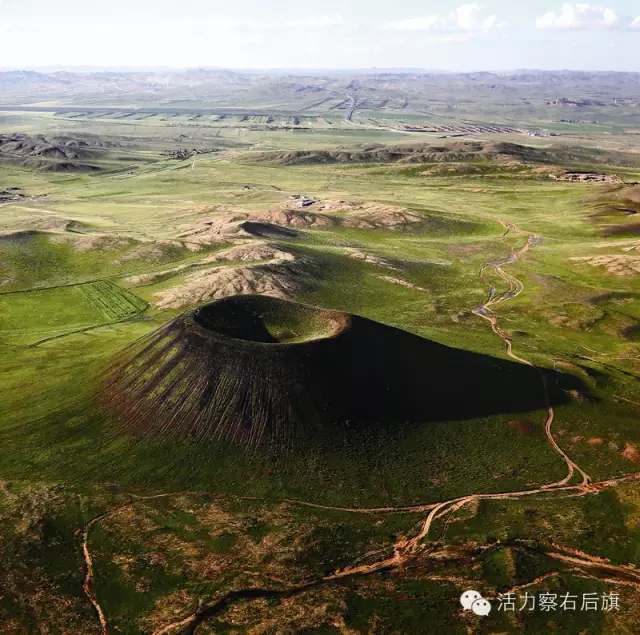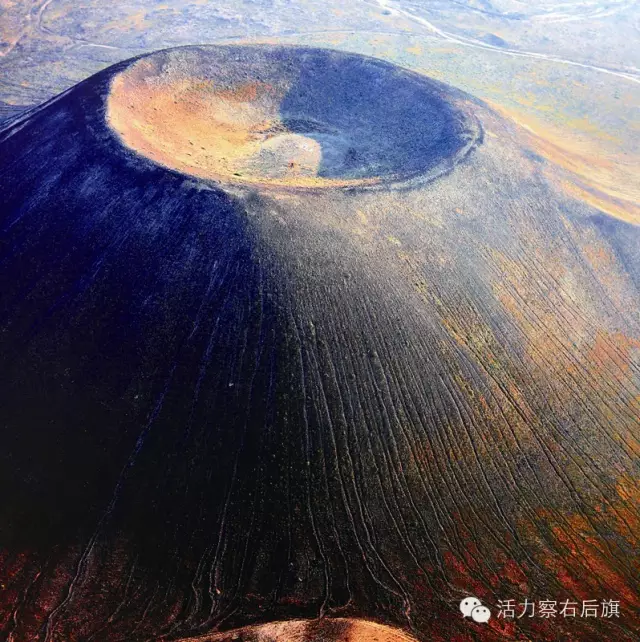 察哈尔右翼后旗的乌兰哈达火山群,从高空俯瞰,高耸挺拔的火山犹如太上老君的炼丹炉,当地村民按照火山的相对方向给几座火山取名为“北炼丹炉”、“中炼丹炉”和“南炼丹炉”。图下方火山锥形态完好的是“中炼丹炉”,右上角的火山是“北炼丹炉”。