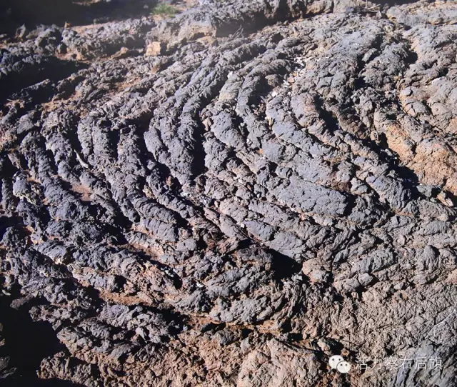 站在高处俯瞰锥脚东南和西侧,可以辨认出形似火口的岩浆溢出口,这是北炼丹炉进入宁静式溢流阶段的标志。岩浆自溢出口流出后,沿低洼地带流淌而下,西侧溢出的熔岩较少,东南方向则形成大量碱玄岩组成的岩流,前缘直抵本区最大的乌兰湖少海子,分布面积达70平方公里。而在5公里外的中炼丹炉火山,这样的熔岩流更结成气势磅礴的“石河”、“石湖”乃至“石海”,有的阻塞水系形成莫石盖淖和白音淖海子等火山堰塞湖,有的则在推挤流动中使结壳破裂、掀起,变成一批翻花石,又有长条挤压脊纵贯其中,一时间石浪翻滚,石涛拍岸。
