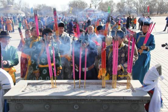 3、大年三十大召、席力图召烧香祈福全天,席力图召初一至初八全体喇嘛诵读《平安经》、《长寿经》,大召正月初八至十五日祈愿大法会。