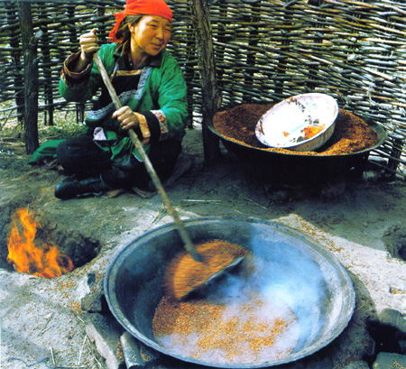 在蒙古语中,炒米被称作“胡列补达”,用糜子经过蒸、炒、碾等工序加工而成。