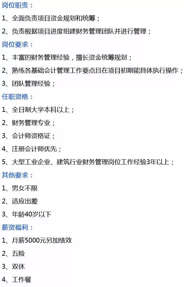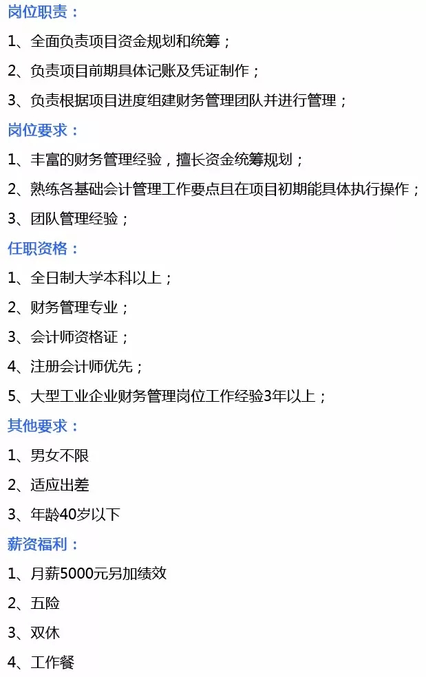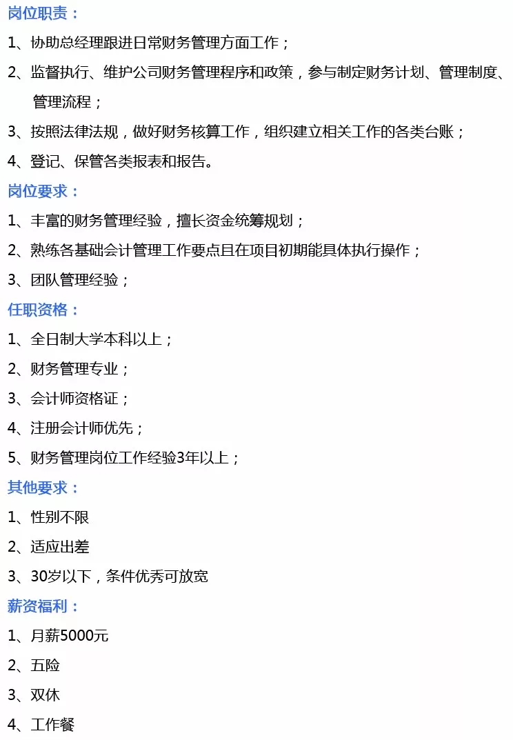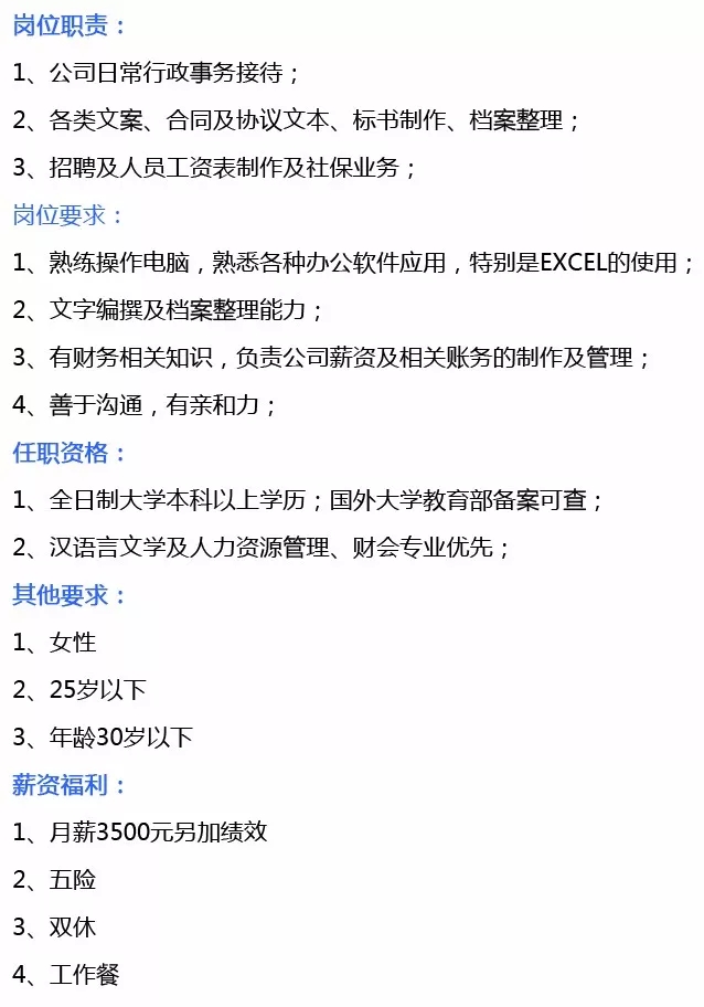 需求岗位:综合管理文员、财务经理