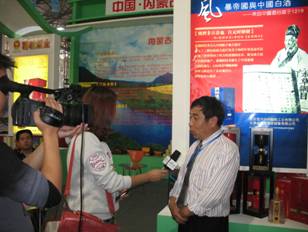 图为:呼和浩特制酒厂总经理柳太林先生在展会上接受央视网招商频道记者采访
