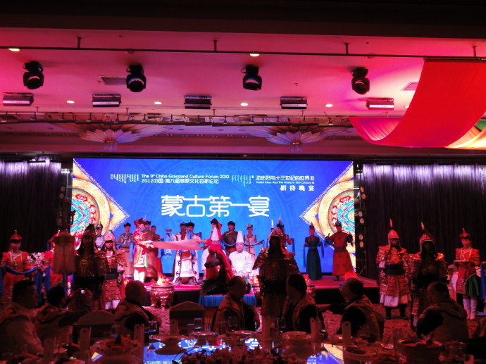 晚宴上,在内蒙古饭店的瑶池厅还上演了元代最盛大的宫廷宴“诈马宴”。其恢宏的气势震撼了在场的所有嘉宾。