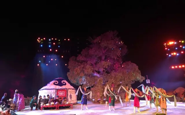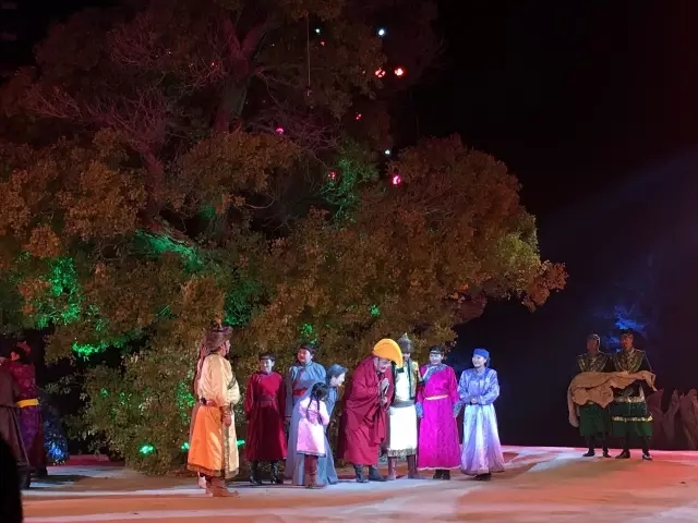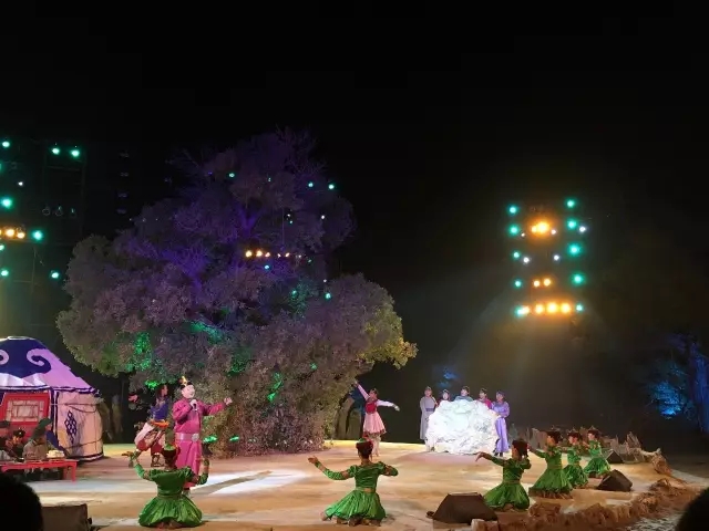 大型实景音乐剧《阿拉腾陶来》以额济纳的千年胡杨林为背景,采用了蒙古民族歌舞与美国百老汇音乐剧相结合的创新表演形式,展现了额济纳地区的发展历程和动人故事。