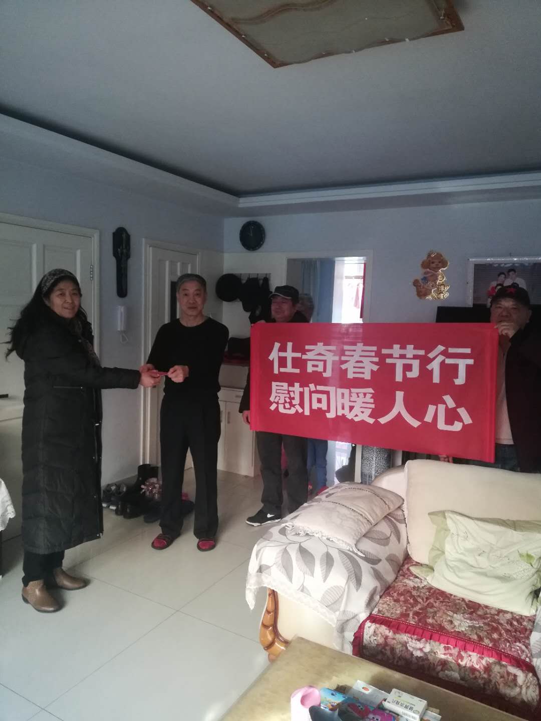 2019年1月24日,在新春佳节即将来临之际,仕奇集团党委组织部分党员,到集团困难党员家中走访慰问,向他们送去新春的祝福和集团党委领导的关怀。