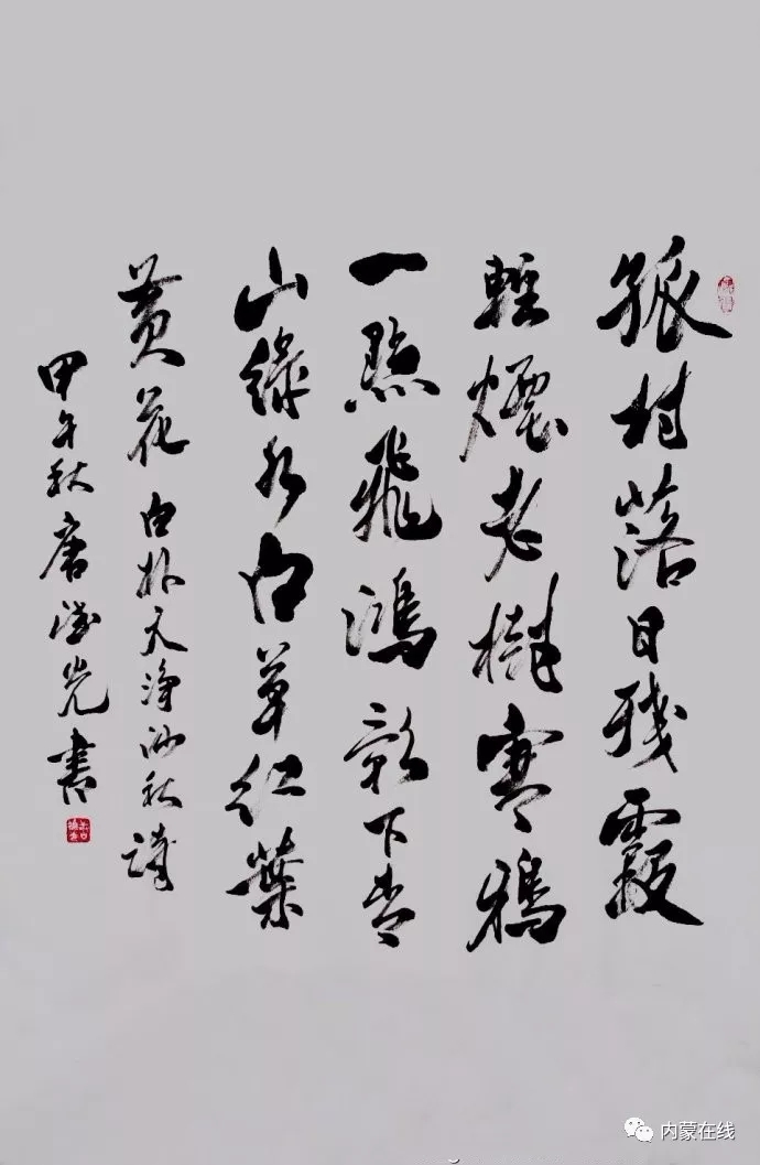 《天净沙秋》的内容是:孤村落日残霞,轻烟老树寒鸦,一点飞鸿影下。青山绿水,白草红叶黄花。